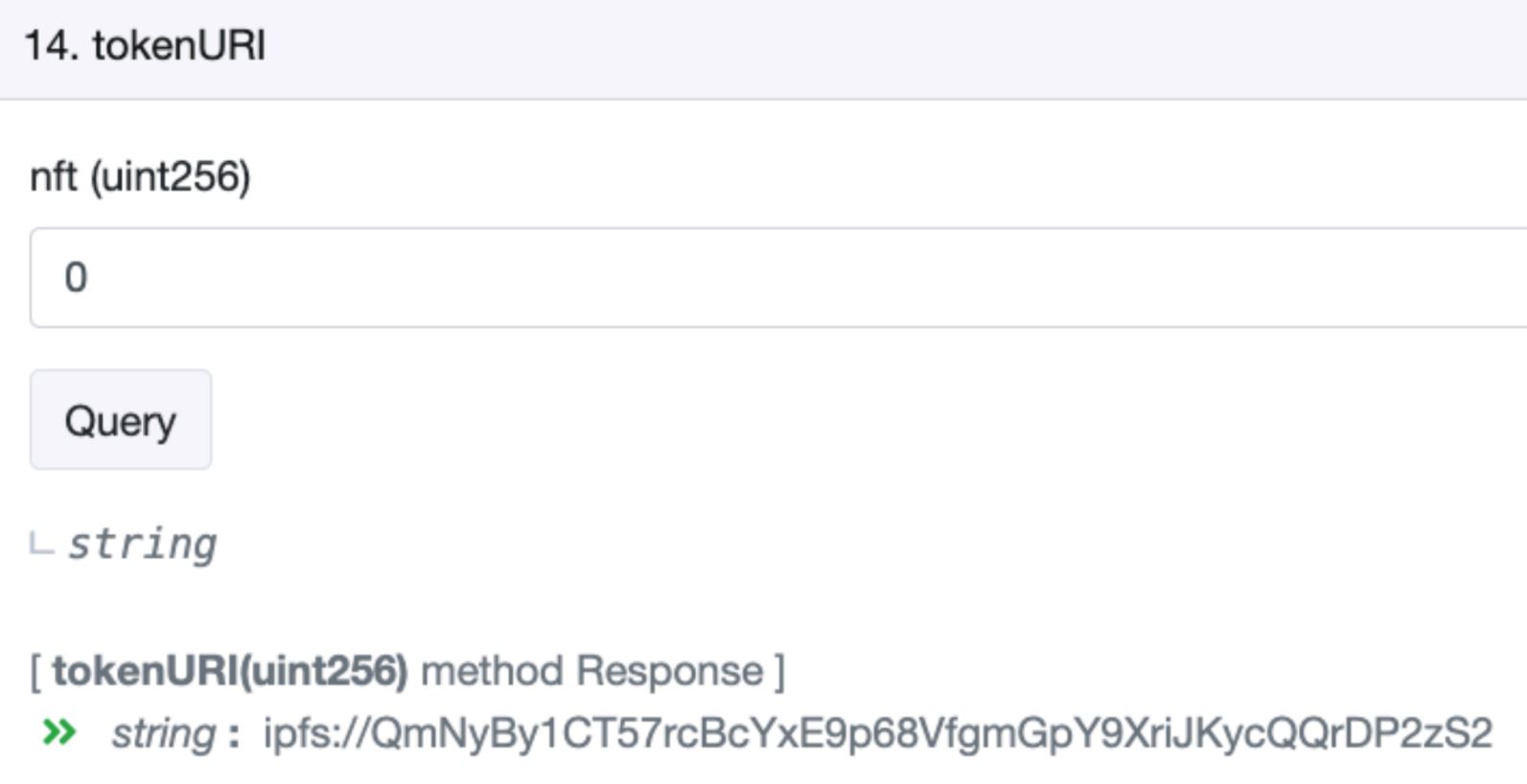 - 4. Under tokenURI you can put in the id and see the resulting IPFS hash.